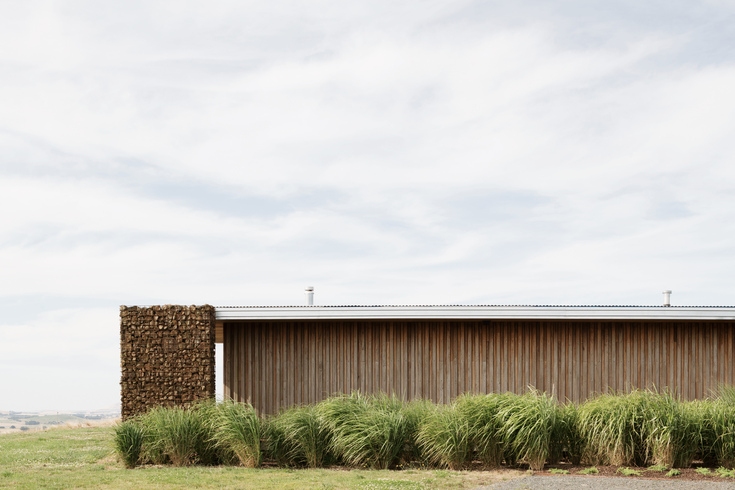 Creating a sanctuary from the elements, a partially enclosed garden space offers a refuge and contrasts with the surrounding farmland. The site’s natural occurrence of exposed rocks, unearthed over time, inspired the choice of materials and influenced the resulting colour palette. We utilised stone from both the site and neighbouring farms to anchor the building into the site, with rough-sawn timber cladding talking to the lost bush land, and a galvanised steel roof which is a nod to the vernacular Australian farmhouse.