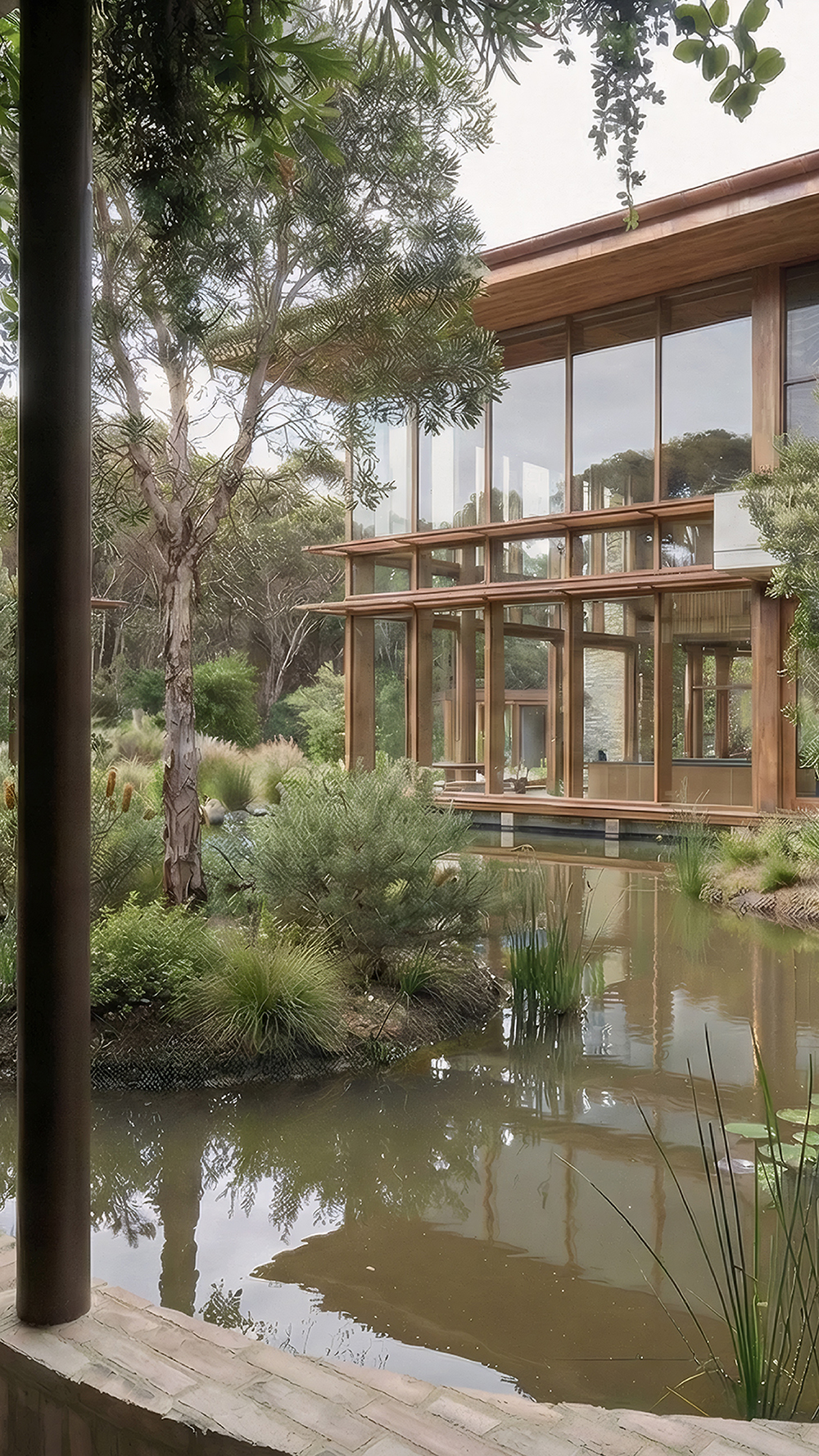 Clearing the existing bushland to make room for the farm necessitated the construction of a dwelling to serve as a secure anchor for the inhabitants; connecting harmoniously with the land and meeting the needs of a growing family. Considering the potential challenges posed by harsh weather conditions and the absence of natural buffers, the architectural form needed to feel substantial and robust, providing a solid foundation for family life while adapting to the site’s unique characteristics.
