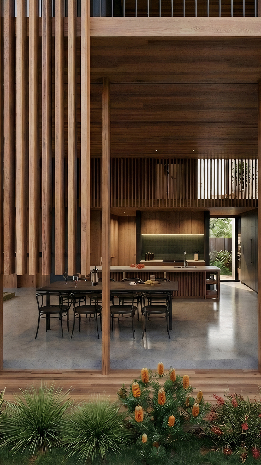 The main home challenges traditional planning with a "no dead space" philosophy. Organised around a central core, the floorplan features a looping circulation path where hallways are activated rather than passive. By integrating study nooks and play zones into these transition spaces and varying ceiling heights, the result is a spatially dynamic home where every square metre works hard.