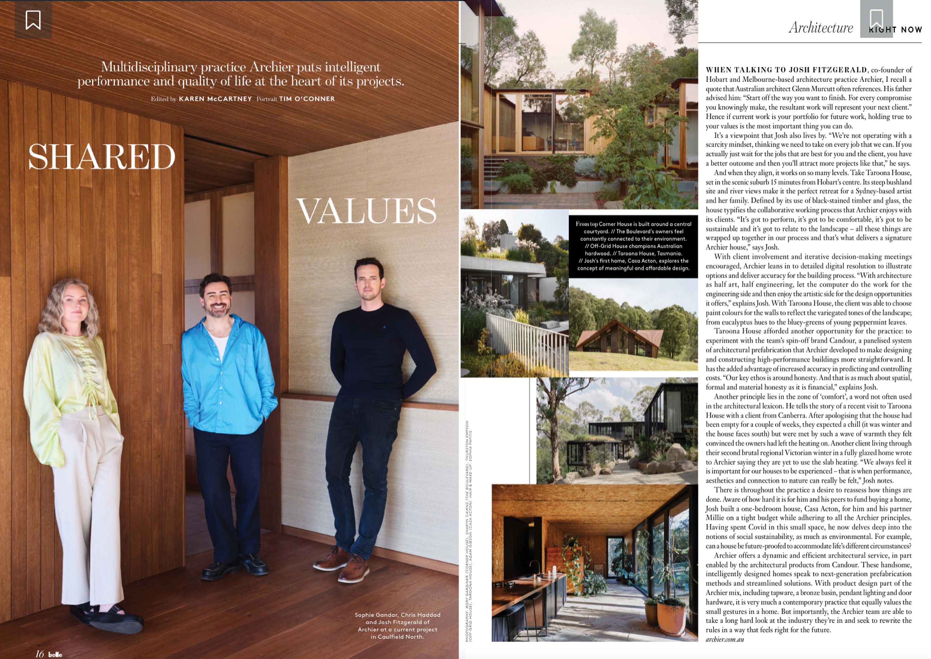 We were inspired by the idea that buildings should be felt, not just seen, and driven by a passion for efficient, sustainable construction. Our time at UTAS fostered hands-on learning and an appreciation for digital fabrication, sparking our love for making. After relocating to Melbourne for post-graduate studies and industry experience, we grew frustrated with inefficiencies in traditional project delivery, reigniting our ambition to start our own practice.